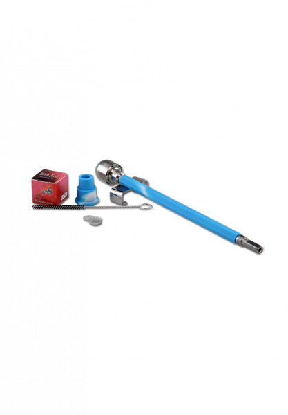 Der 'Wand Vape' von 'Black Leaf' ist ein mechanischer Handvaporizer, den man aber auch mittels des beiliegenden Bongadapters aus Silikon in eine Bong stecken kann. Der Adapter passt auf die Schliffe NS 14 sowie NS 19. Der Zauberstab-Vaporizer ist vom Mundstück bis zur Heizkammer (für Kräuter) aus wärmeleitendem Edelstahl. Damit die Finger nicht zu heiß werden und als Schutz für eine Glasbong, ist das Zugrohr mit Silikon ummantelt.